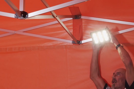 Mit dem modernen LED-Strahler bringen Sie energiebewusst Licht in Ihr Faltzelt.