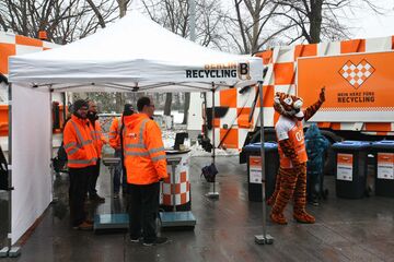Werbeaufdruck auf ihrem Infostand